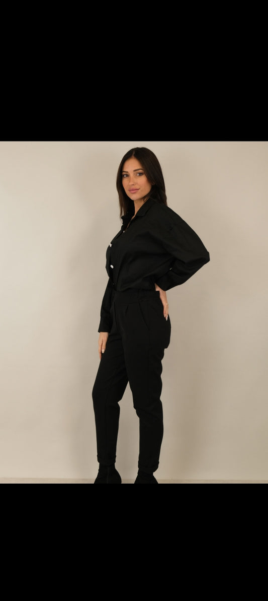 Pantalon plis devant, ceinture élastique dos, 2 poches