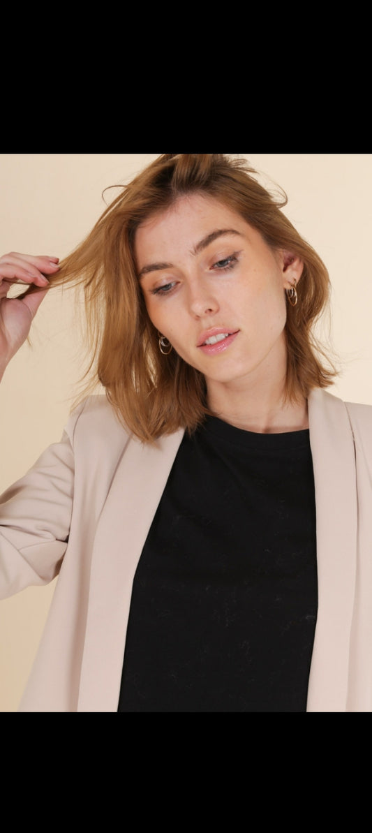 Veste blazer mi long manche 3/4 avec doublure beige