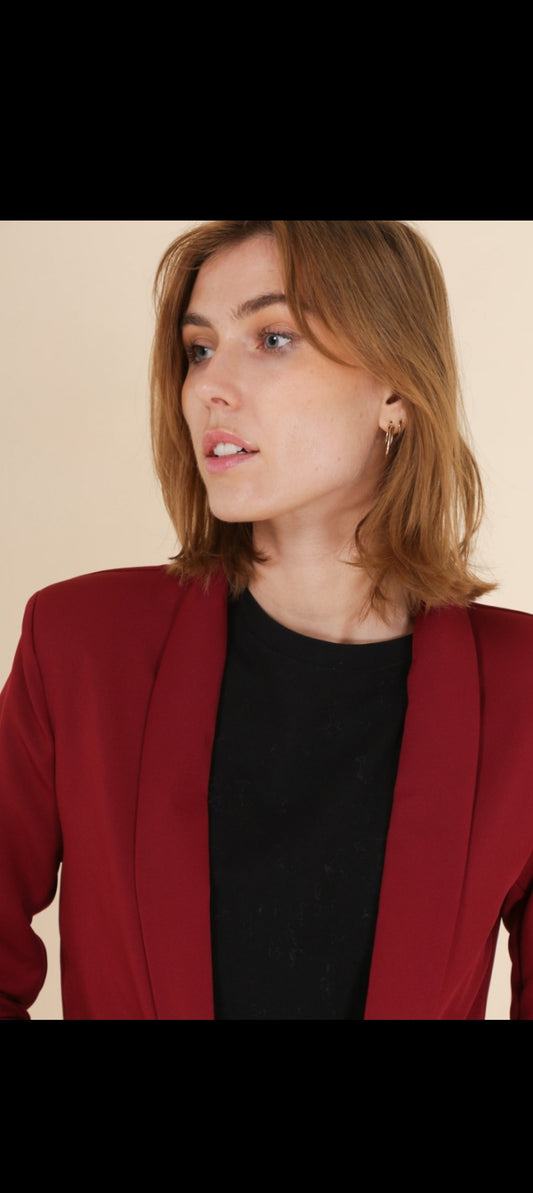 Veste blazer mi long manche 3/4 avec doublure bordeaux